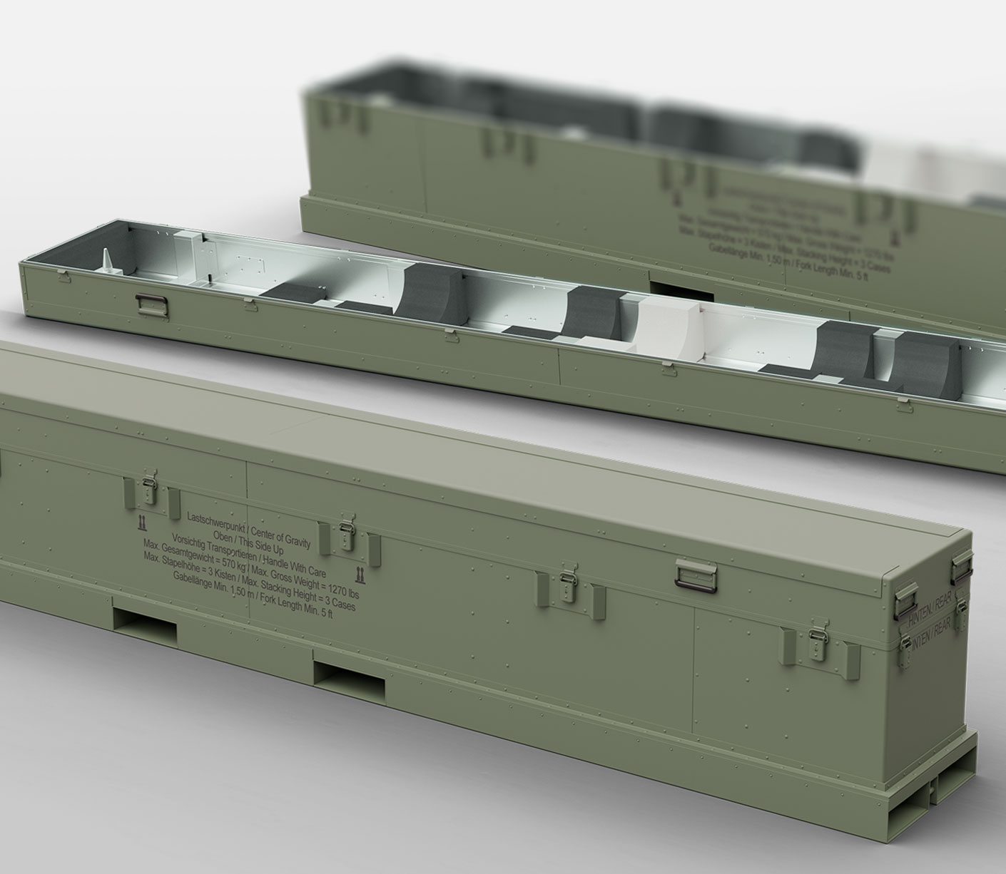 The packaging for missile systems is crafted from high-strength and lightweight materials such as aluminum, ensuring resilience against impacts, vibrations, and environmental stress. Designed for repeated use, these durable cases help to minimize costs and eliminate waste. Each container incorporates foam padding and shock-absorbing isolators to cushion mechanical stress during transportation. Cases are treated with specialized coating to combat against rust and corrosion, and to minimize degradation. Additionally, cases are sealed to protect against water, moisture, dust.